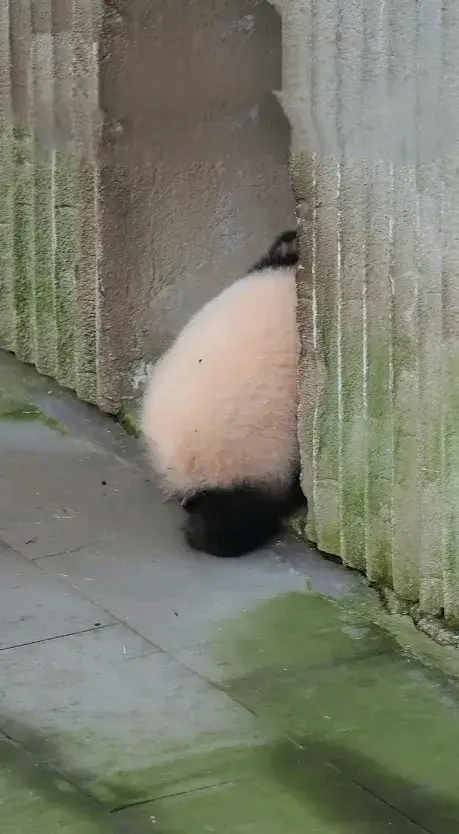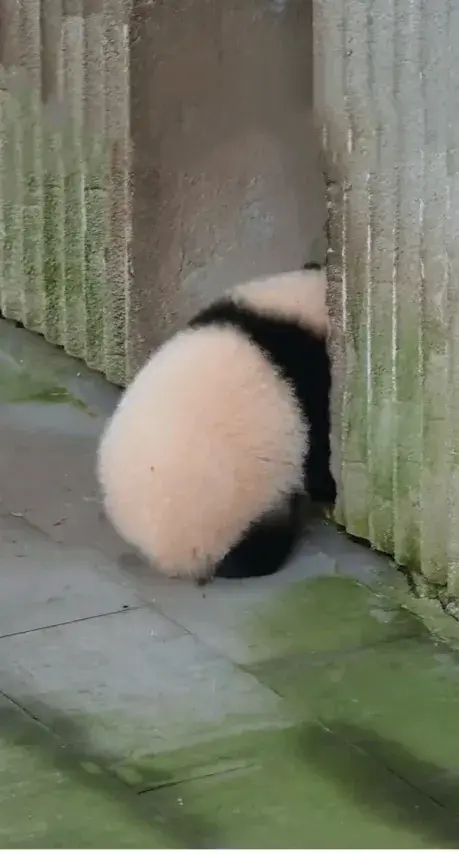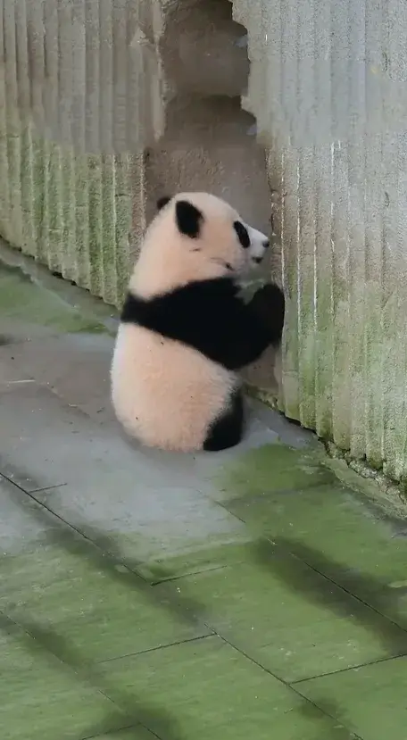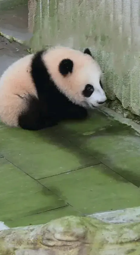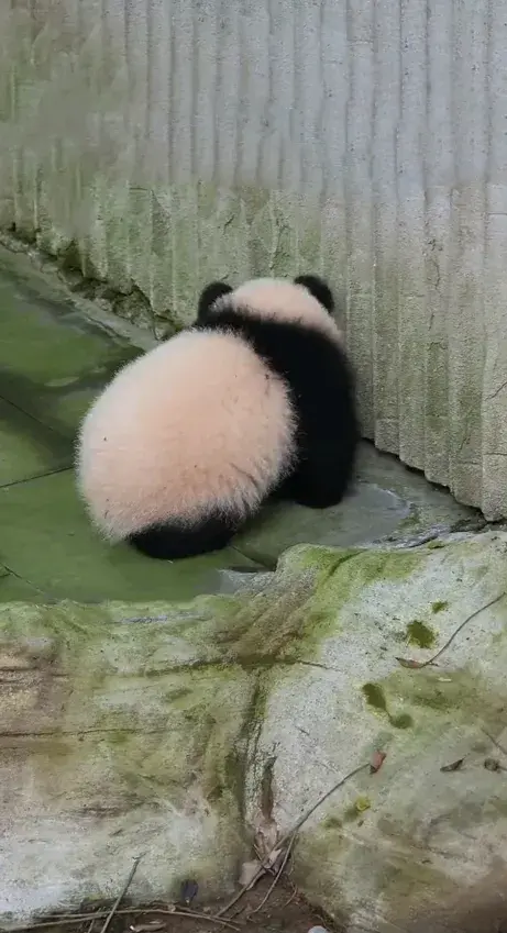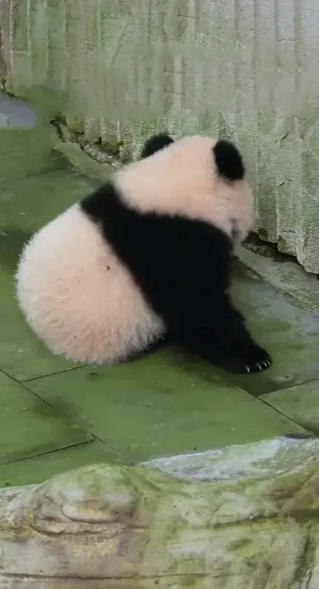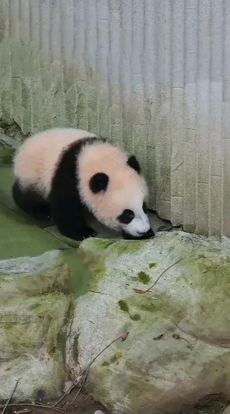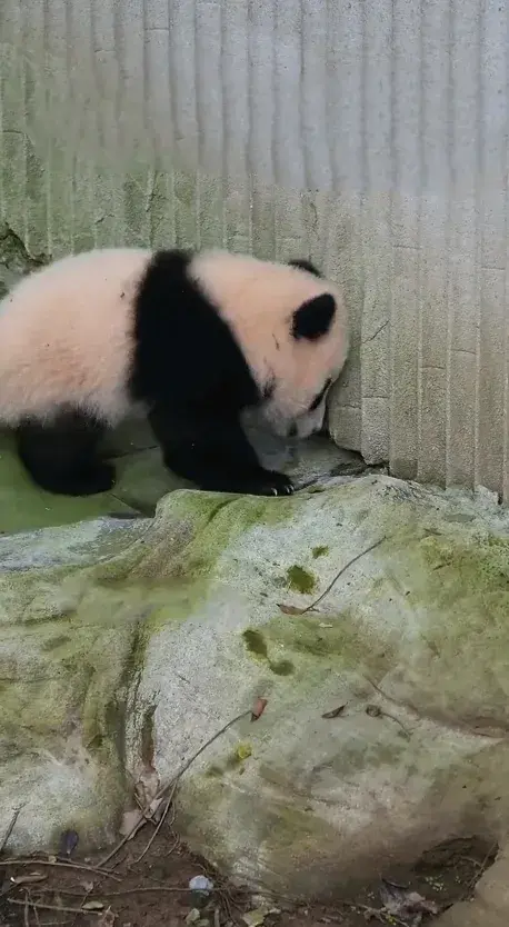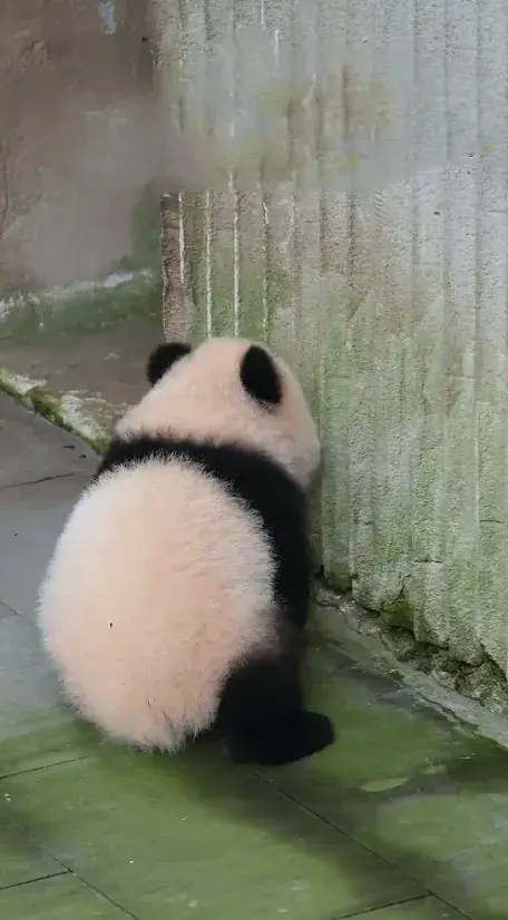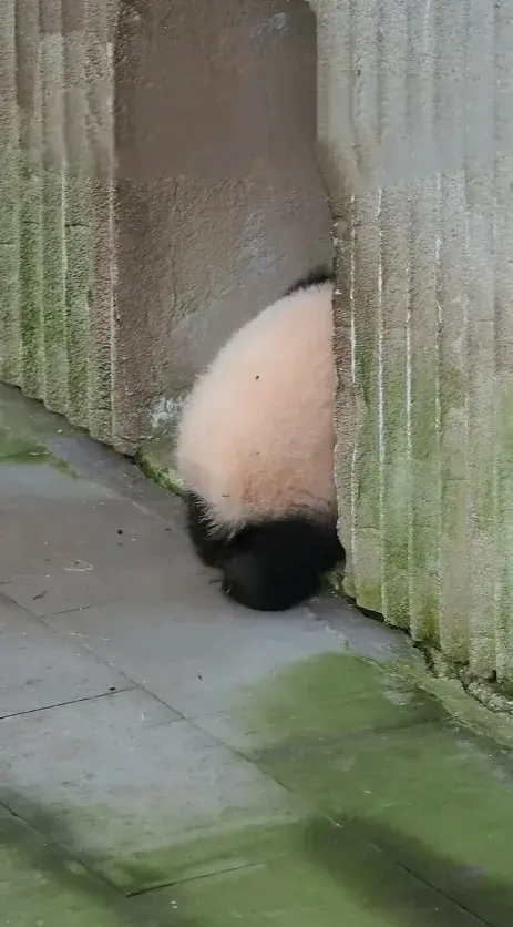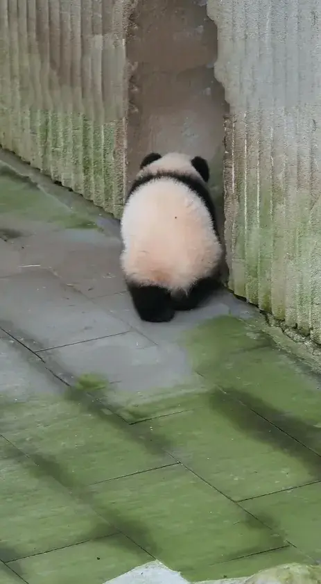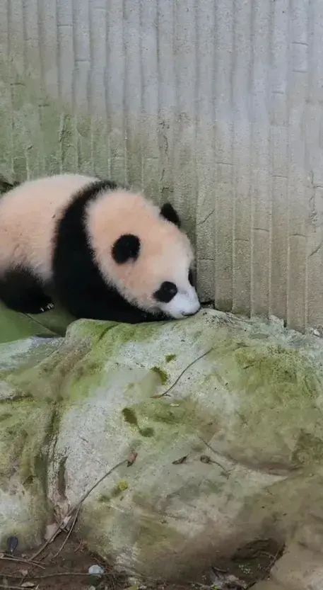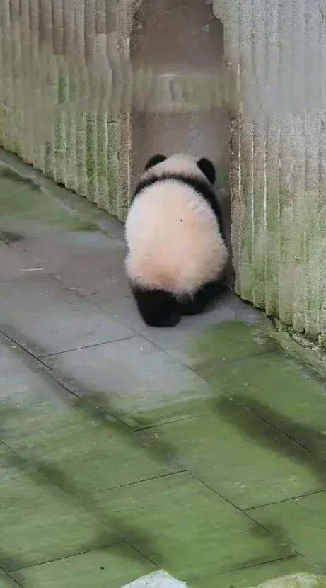 大熊猫幼崽小月亮下班回家途中开始纠结,回还是不回,宝贝好愁啊