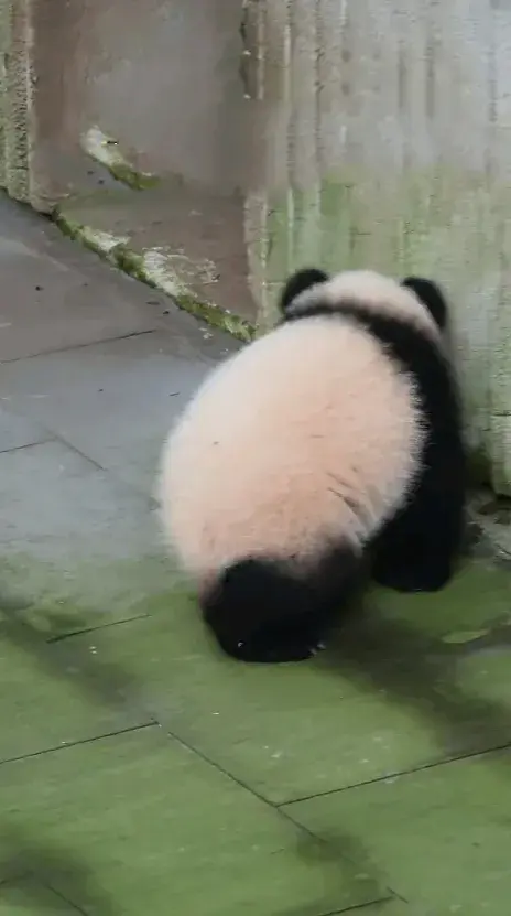 大熊猫幼崽小月亮开始学会自助下班回家,一路畅通无阻,一口气便回到家里,途中经过员工通道还知道打卡并叫奶爸给自己开门。姨姨们都一直地赞扬小月亮太乖巧了,三混子奇颖与小月亮就无法比,一个天上,一个地上。这好行为还没保持几天,回家途中便开始纠结上了。回还是不回,小月亮好为难,一路反复纠结,愁啊,哈哈,呆呆萌萌的样子太可爱了!